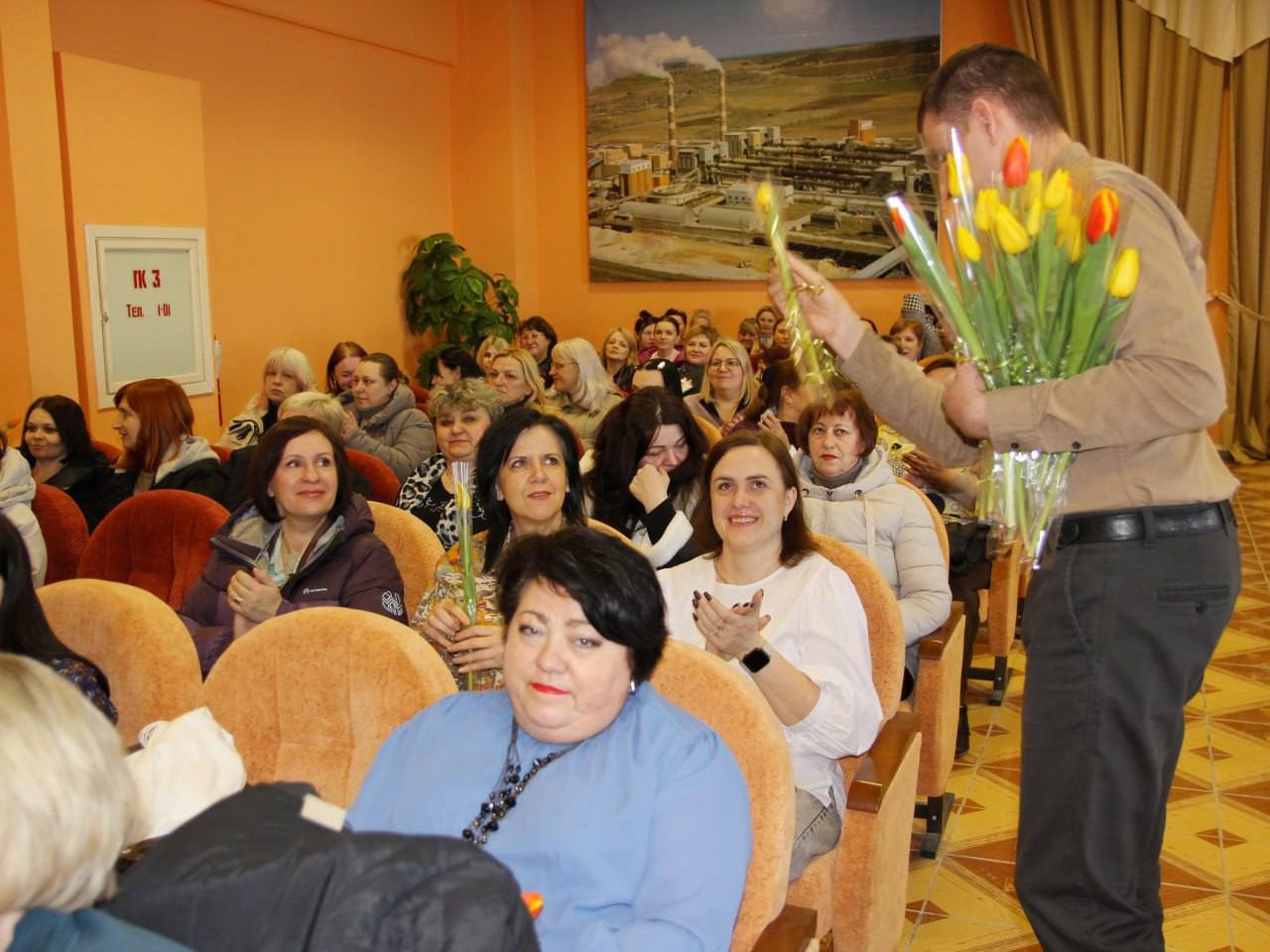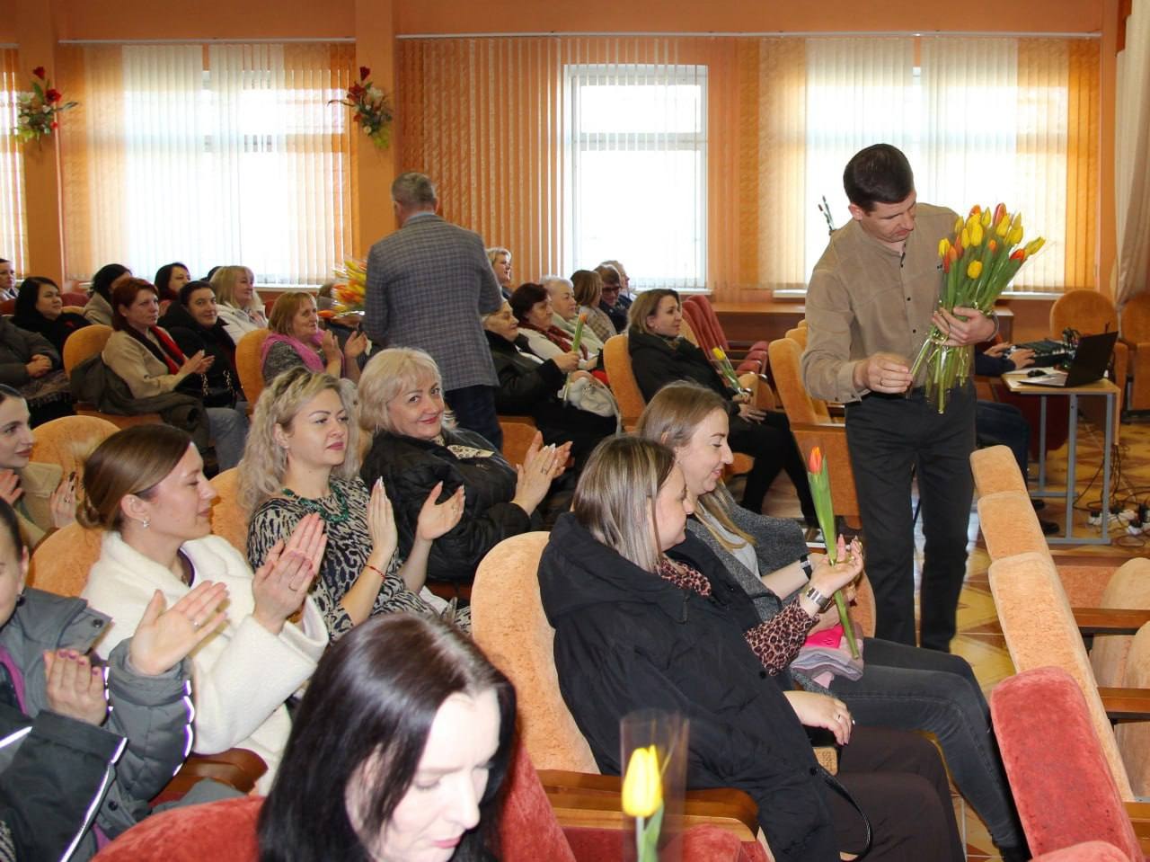 Он поблагодарил сотрудниц за профессионализм, трудолюбие и умение сохранять красоту и обаяние даже в самые напряженные рабочие будни. От первичной профсоюзной организации всем женщинам в зале были вручены цветы.