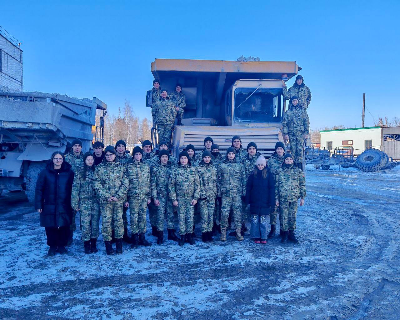 Затем юные патриоты отправились в ТУП «Красносельскавтотранс». Здесь воспитанники увидели работу гигантских карьерных самосвалов и даже смогли прокатиться вместе с опытными водителями.